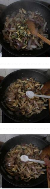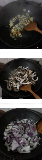 蘑菇洋葱炒鸡蛋的材料:秀珍菇200克,洋葱1个,鸡蛋2个,油,盐,糖,生抽,鸡精,小葱,姜,蘑菇洋葱炒鸡蛋的做法:1. 小蘑菇洗净,洋葱切丝,鸡蛋打碎,加入葱段搅匀,姜切片 2. 坐锅倒油烧热,放入鸡蛋炒熟,盛出备用美食网3. 锅内留底油油,倒入小蘑菇,翻炒至蘑菇变软出水,放入洋葱炒匀,滴入几滴生抽炒匀后倒入炒好的鸡蛋炒匀,再加入盐,糖,鸡精,翻炒均匀出锅就可以了