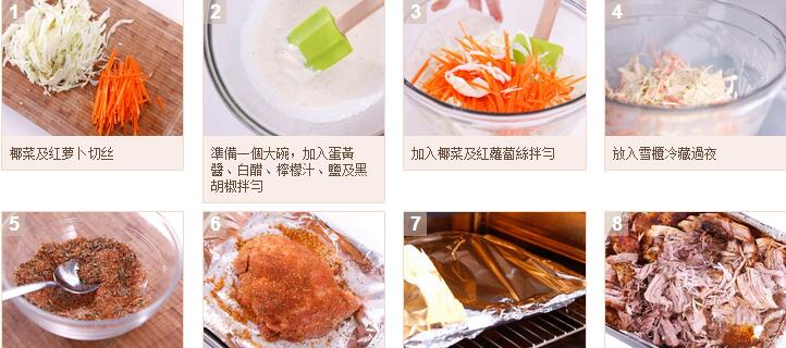 手撕猪肉三文治拌椰菜丝沙律的做法: