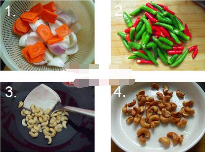 4、热锅冷油,烧五成热,下葱姜泡椒,炒一下,倒入鸡杂,糖,十三香,一起翻炒出香味,鸡杂水分炒出。放点料酒,生抽,翻匀,放洋葱胡萝卜,炒断生,调入盐,把辣椒倒入,翻炒到汤汁变干放点香醋。淋香油,放味精。翻炒均匀即可在出锅放腰果,也可以装好盘再撒。 怎么做好吃