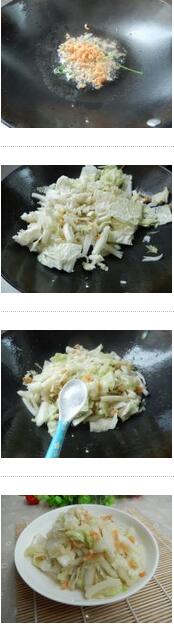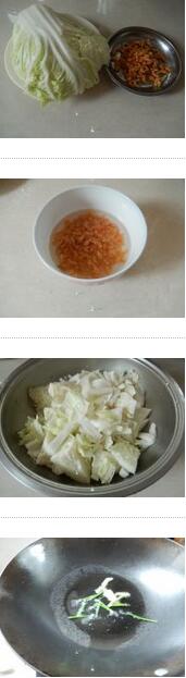 开洋白菜的材料:大白菜400克,开洋(虾米)20克,料酒,小葱,精盐,食用油, 美食网 开洋白菜的做法: 1. 开洋(虾米)洗一下,滴少许料酒,加水泡软,白菜洗净切好,菜茎切细条些。 的做法 2. 坐锅倒油下入油炒香葱,加入虾米炒香,然后加入少许泡虾米的水稍煮几秒,再快火翻炒,白菜炒软熟,加入精盐炒匀即可出锅