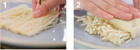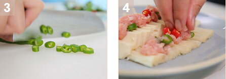 金针菇豉油蒸豆腐的材料:金针菇80克,嫩豆腐100克,青尖椒1根,红尖椒2根,豉油10克,肉末40克,料酒10克 金针菇豉油蒸豆腐的做法: 1.金针菇洗净去头,沥干水分摆在盘底,将嫩豆腐切片扑在金针菇上美食网 2.将肉末加料酒拌匀腌制5分钟,腌制好的肉沫与青红椒末拌匀 3.将拌匀后的肉末在豆腐上浇上豉油,隔水蒸8-9分钟后出锅