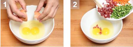 臘味蔬菜煎蛋的材料:腊肠半根,鸡蛋2只,长豆150克,红萝卜100克,鸡粉1/4茶匙,盐1/4茶匙,糖1/4茶匙 美食网 臘味蔬菜煎蛋的做法: 1. 长豆切碎。红萝卜切成小块,腊肠切成小块。 2. 打蛋,加入准备好的长豆,红萝卜和腊肠。 3. 加入调味料搅匀。 4. 在油镬内中火加热适量油。加入一大匙鸡蛋混合物,煎至双面金黄,每面约需时2分钟。