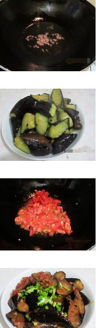 西红柿炒茄子的材料:西红柿2个,茄子3个,葱少许,姜少许,蒜少许,花椒 西红柿炒茄子的做法: 1.茄子切块后在上面划上几刀,以便于入味,西红柿切小丁,葱姜蒜切末。 2.坐锅倒油烧热,放入发椒爆香,倒入茄子翻炒到变软后盛出。 3.锅内留油,放入葱姜蒜爆香,倒入西红柿炒至出红油。 4.再倒入茄子一起炒至茄子上都裹上西红柿酱,洒上葱花出锅。