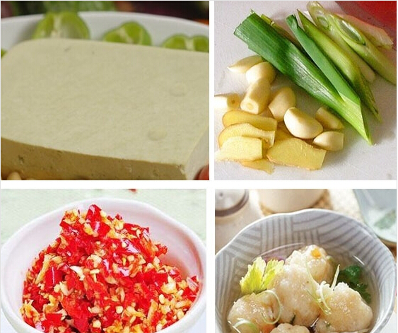 剁椒百花豆腐的材料:豆腐300g,虾仁200g,鸡蛋清1个,姜块10g,大葱25g,剁椒30g,精盐5g,淀粉15g,植物油30g,香油10g,胡椒粉,味精,料酒15g,