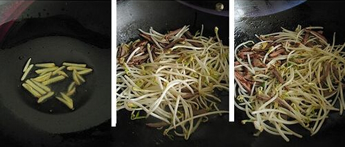 鸭丝绿豆芽的材料:烤鸭脯肉200g,绿豆芽300g。香油25g,鸡精2g,醋2g,盐3g,姜末2g,花椒1g。 鸭丝绿豆芽的做法: 1. 将烤鸭脯肉切成丝,绿豆芽洗净,去根部。 怎么做好吃 2. 炒锅置火上,放香油烧热,放入花椒炸出香味后捞出;下姜末稍煸,放鸭丝、豆芽,再加少许醋、精盐、鸡精快速翻炒,炒熟后,盛入盘中。