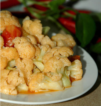 花菜的维生素C含量极高,不但有利于人的生长发育,更重要的是能提高人体免疫功能,促进肝脏解毒,增强人的体质,增加抗病能力,提高人体机体免疫功能。 孩子们常吃花菜,可促进生长、维持牙齿及骨骼正常、保护视力、提高记忆力。更为可喜的是花菜质地细嫩,味甘鲜美,食后极易消化吸收,其嫩茎纤维,烹炒后柔嫩可口。如此有利于孩子们的花菜,怎么做才能让孩子们喜欢吃呢?做菜网抓住了小孩子爱吃甜食的特点,特地推出这道番茄炒花菜~~