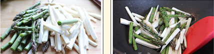 2 等芦笋炒软后放入盐;临盛盘前放入鸡粉。