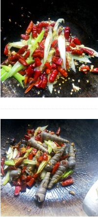 3. 将油烧热后放入红辣椒,葱,姜蒜至锅中炒香
