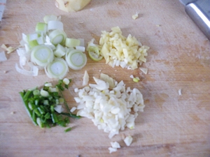 主料猪腰子(1个)调料葱(1小段)姜(1小块)蒜瓣(适量)香葱(2个)生抽(适量)盐(2棵)糖(适量)淀粉(1勺)料酒(适量)花生油(半茶匙)厨具炒锅