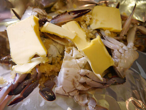烤奶油螃蟹的材料:螃蟹,奶油,蒜末,黄油 烤奶油螃蟹的做法: 1、先把蟹脚,蟹身用牙刷刷一下清洗干净。 2、把螃蟹剖半,把蟹脚拍碎一些些,方便入味。 3、放点黄油在剖开的螃蟹上面。 4、用锡箔纸将蒜末,奶油,螃蟹包在一起。 5、入烤箱200度C烤20分钟即可享用了。