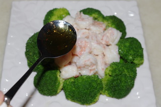 主料鲜虾仁(适量)西兰花(适量)调料蛋清(适量)高汤(适量)盐(适量)料酒(适量)厨具炒锅 1 准备所需食材 2 虾仁用刀开背,取净虾线,放入一个蛋清和适量盐,搅拌均匀后放一旁入味15分钟 3 先锅里倒水放入洗净的西兰花氽熟(加入适量高汤调料、盐、料酒) 4 将烧入味后的西兰花盛出装盘 5 锅里倒油,烧热 6 将虾仁慢慢倒入烧热的锅内 7 将虾仁翻炒3分左右出锅 8 装盘,淋上一勺香油