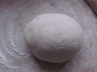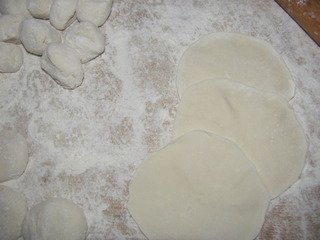 7 面团揪成小剂子,擀成圆形的饺子皮。