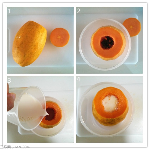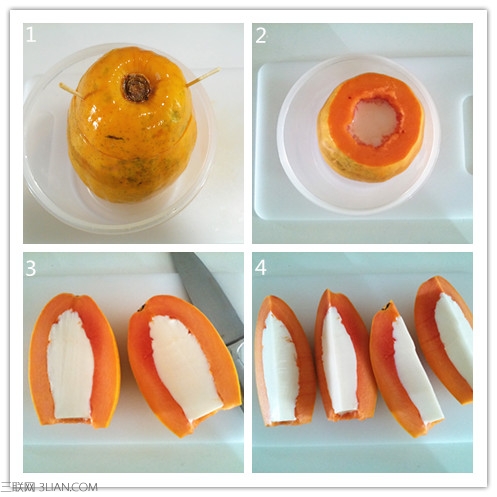 4.图2-用小勺子把木瓜籽掏空。