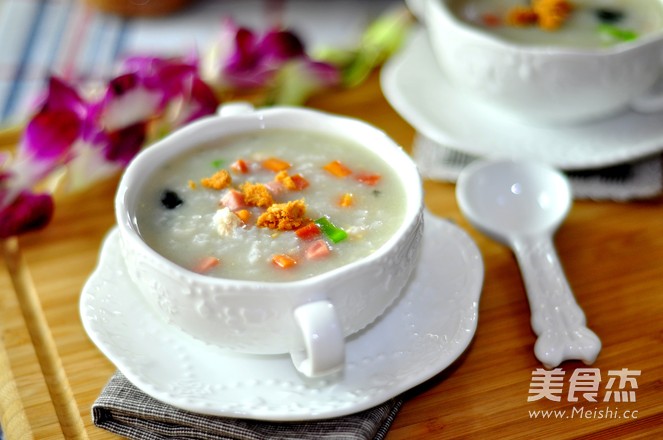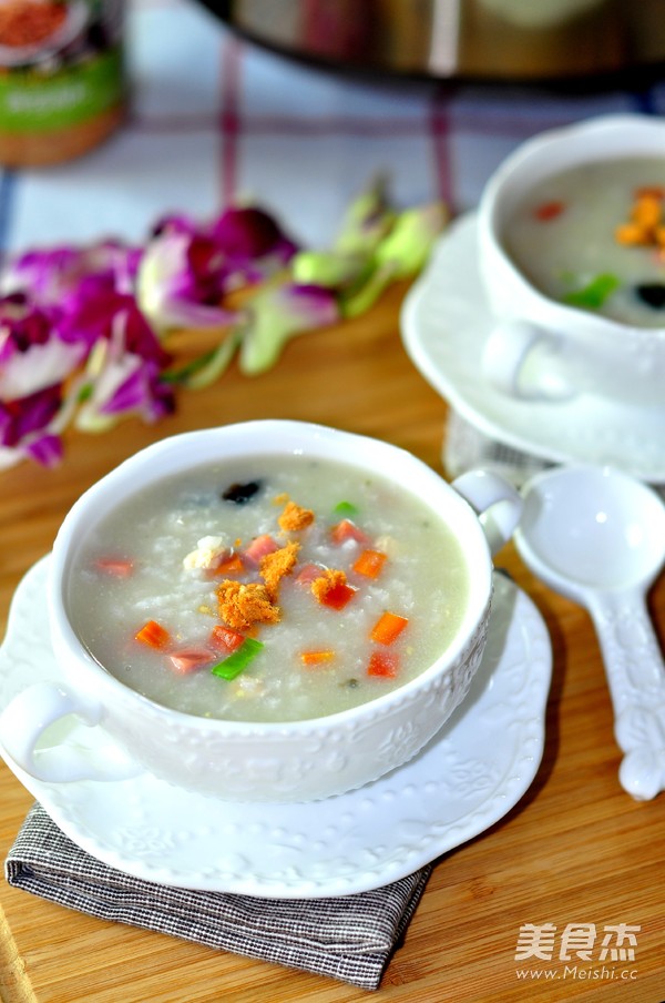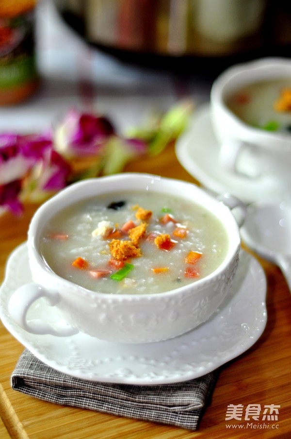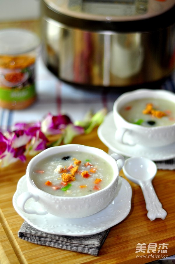 7.时间到后,关闭电源,搅匀。装起,点缀上肉松,即可食用。