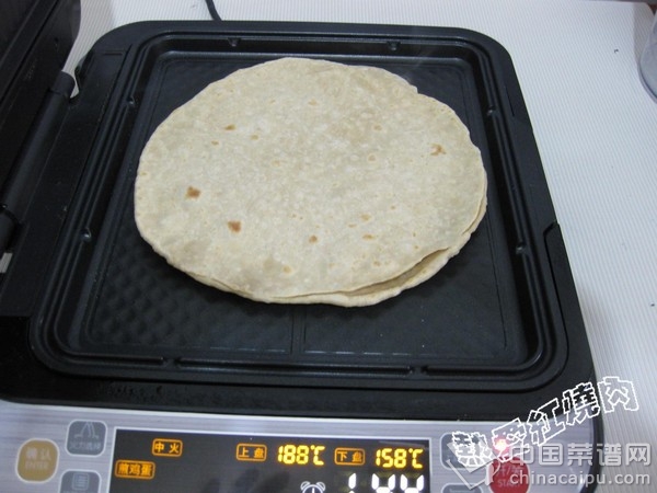 8.待饼铛预热好将饼坯放入饼铛内