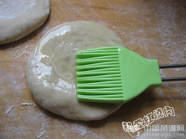4.每个剂子按扁后在一半的剂子上抹一层油