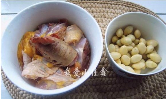 白果味甘,微苦、涩,性温,有小毒。能温肺益气,定喘咳,缩小便,止带滞,止泻,益脾。今天我就做了这个白果炖鸡。白果炖鸡原料:土鸡、白果、姜片、盐。做法:1、将鸡宰切然后用清水洗净;2、将白果壳敲开、去衣(褐色),将种仁洗净;(我买就买的这种弄好的)3、将鸡入锅,加水,放姜片、煲3个小时再放入白果、盐,加盖用文火烧15分钟左右,至鸡肉酥烂、汤浓即可。这道滋补靓汤美味异常,汤色白润、鸡肉鲜美、白果清香软糯,实在是一道让人难忘的美味。