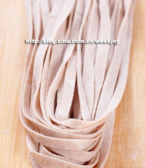 4.擀好的面皮折叠,然后切成面条,宽窄随意。