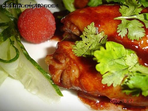 用料:鸡翅。把大小臂分斩开。 葱、姜、蒜切大块,大段。糖、料酒。腐乳汁。 做法: 1.炒菜锅里放油,稍热后放鸡翅翻炒至表皮发紧,不再有血水渗出,盛出来。 2.原锅再放一点儿油,稍热后放葱姜蒜。出香味后放料酒、糖、腐乳汁。 3.汁液大开后放鸡翅,添水到与鸡翅平。大火炖,收汤,汤快干时就好啦。 注意事项:腐乳汁的量多少算合适呢?最好是它足够做一锅鸡翅而不用再放盐的程度。没有腐乳汁,把腐乳搅烂也能用。汤快干时注意搅动,别让它糊了锅底。