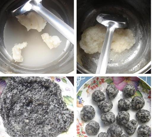 糯米馅:糯米粉70克 糖70克 水110克 熟黑芝麻30克 猪油35克