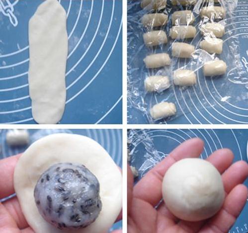 4,将冷藏后的馅料分成16份,揉圆备用。(馅在冰箱的时候开始制作水油皮)
