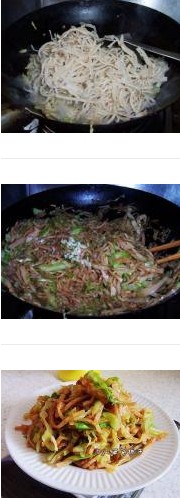 包菜炒饼丝食材明细:烙饼200克 包菜1小棵 盐 2克 鸡精 2克 葱蒜 少许 酱油 1勺制作步骤1. 包菜切丝。2. 烙饼切丝。3. 葱蒜切碎。4. 锅中放油爆香葱碎。5. 加入包菜煸炒。 6. 加入酱油 盐继续煸炒。7. 放入饼丝。8. 用筷子搅拌均匀。9. 加入鸡精和蒜碎搅拌均匀即可。