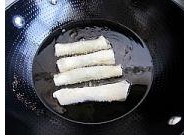 10. 锅中油烧热放入春卷炸制金黄焦酥即好。