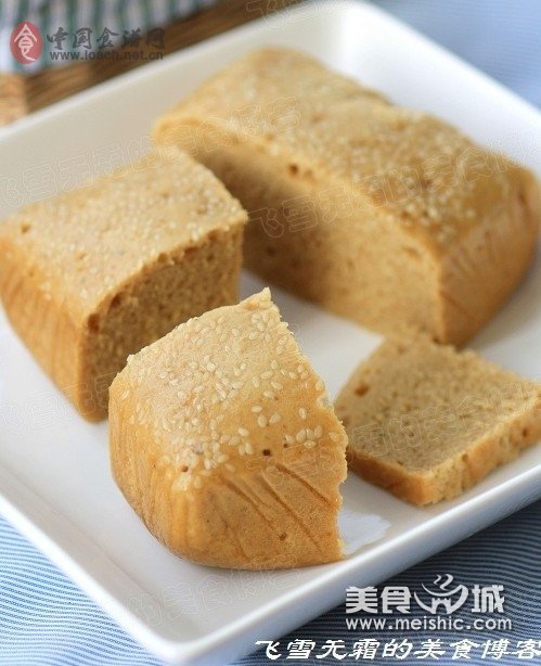 如果一定要放白糖的话,不如放红糖。红糖的营养成份比白糖要多的多。这个蒸糕,就是用了红糖,颜色也很漂亮,上面撒些芝麻点缀,即增加了营养,又增加了风味。