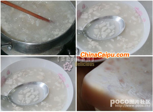 4、取一干净盘子,将熬好的皮冻倒入,冷却、凝固,肉皮冻就做好了。
