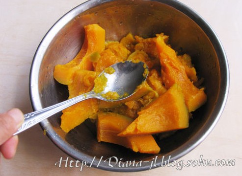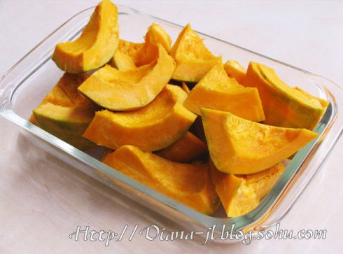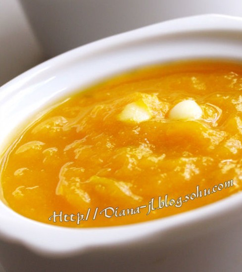 清凉南瓜粥 做法:1.一个中等大小的南瓜,去皮洗净后切成大块后放到蒸锅里蒸熟蒸软,然后用大匙压成南瓜泥。2.再准备一只锅,将南瓜泥放入,再倒入适量清水(调成稀糊状就行),大火煮沸后加1大匙糯米粉和适量白糖(爱吃甜多加,不爱吃甜的少加,吼吼~~!)调匀稍煮片刻即可熄火。冷热都可以吃