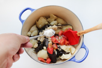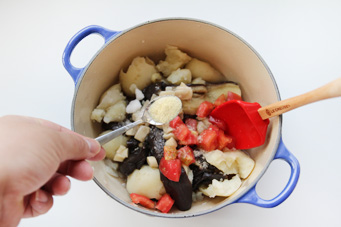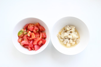 食材:紫色长茄2个土豆 3个西红柿1-2个平菇 2小朵香菜 少许小葱 少许盐巴 少许白糖少许芝麻油 少许鸡粉(选用)少许油辣子 1小勺做法:1.土豆茄子洗净,蒸熟;西红柿切丁,平菇切丁炒熟备用。2.将蒸好的茄子与土豆捣碎,切忌不要捣成泥,然后加入炒好平菇、西红柿丁以及其他调味料拌匀即可,冰箱冷藏后食用风味更佳。