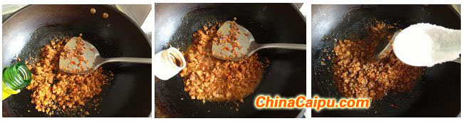 配料:肉末、泡椒、豆瓣酱、葱、姜、蒜、淀粉