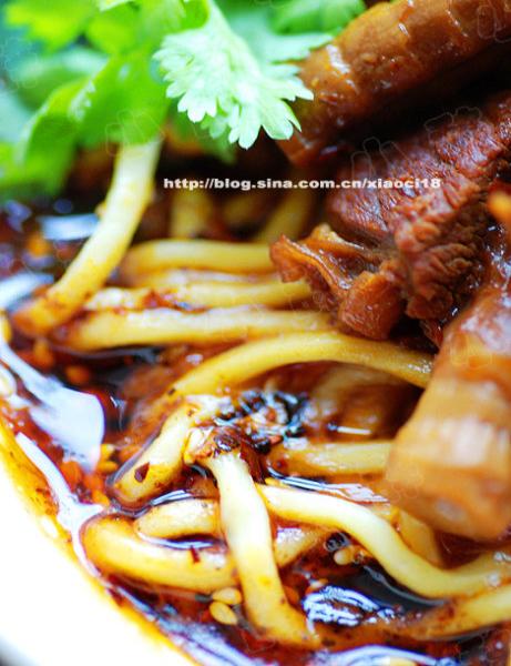1、把鸡蛋面条煮好后,直接淋上红烧牛肉与汤汁,就可以开动了。我自己还淋了些红油,看个人喜好。