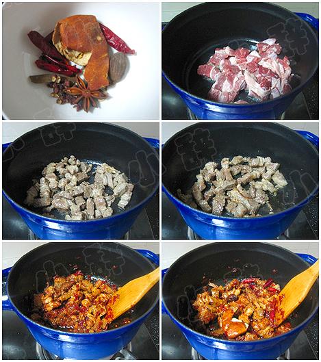 2、牛腩在煸炒时,一定要把血水炒干了再放豆瓣,不然煮出来会有腥味的