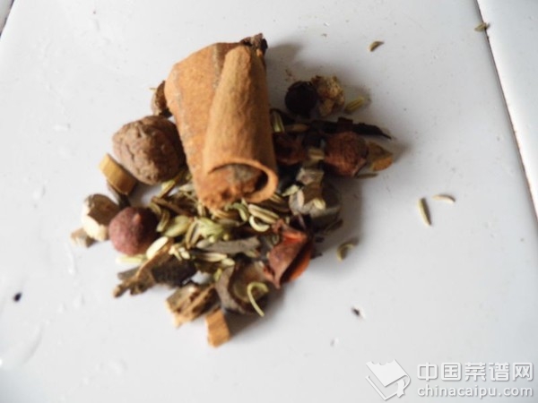 4.香料:桂皮2个、八角2个、草果3个、豆蔻3个、茴香、花椒粒、丁香