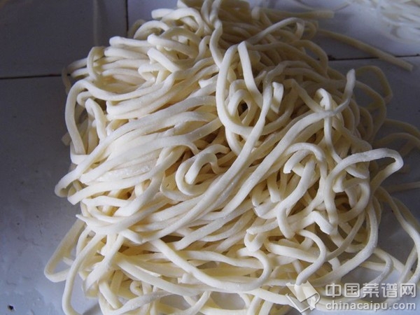 13.准备好适量的面条,记住一点是碱面才能吃出牛肉面的滋味和劲道