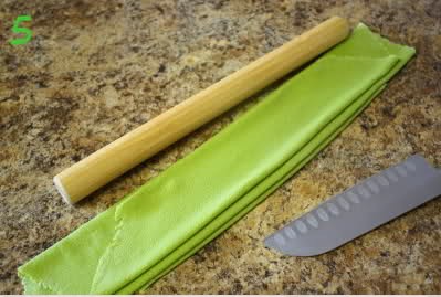 4:在圆面片上撒上少许面粉用手扫均匀,之后将圆面片卷在擀面杖上,用均匀、较大的力道擀开,中途不停的打开、卷起、并变换方向擀制,尽量使面片各处受力一致,厚薄均匀;