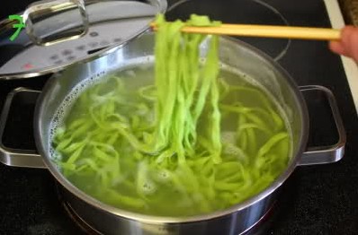 7:在乐扣cookplus锅里加入较大份量的水烧开,放入面条搅散后煮4分钟左右至面条断生,捞出即可食用。