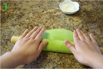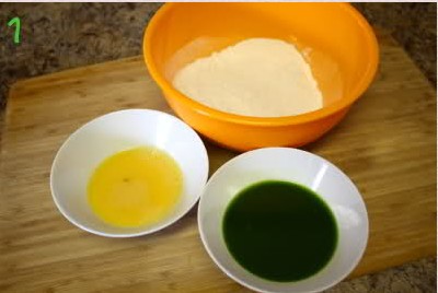 用料:中筋面粉(All purpose flour)2CUP、盐1/4茶匙、鸡蛋1粒+菠菜汁=2/3CUP、另备少许面粉。