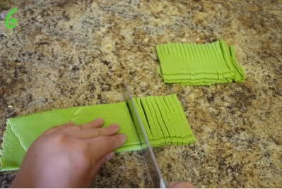 6:用刀将叠好的面片切成喜欢的宽度,用手将切好的面条抖散,以此类推擀完所有的面团;