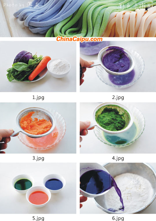 菠菜1小把、胡萝卜1根、紫甘蓝1/4棵、清水450克、面粉750克