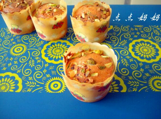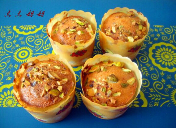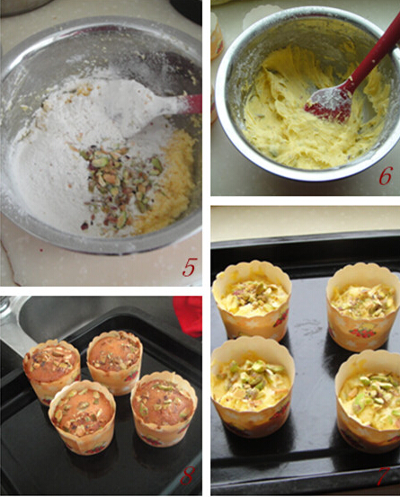 开心杯子蛋糕原料:黄油100克,白糖80克,开心果碎30克,低筯面粉90克,鸡蛋2个。做法:1、准备好所有原料,黄油切小块室温软化,万多福开心果去壳。2、把万多福开心果装保鲜袋里,用擀面杖压成果碎。3、黄油加白糖用打蛋器打至顺滑。4、分次加入鸡蛋液,每加一次打匀后再加下一次。5、加入过筛后的面粉和三分之二的开心果碎。6、切拌成蛋糕糊。7、把蛋糊装入纸杯中,约八分满。8、烤箱预热后,180度烤25分钟左右即可。