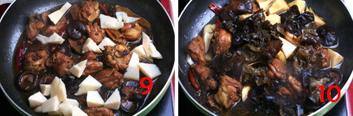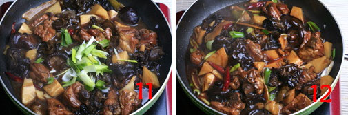 10、待冬笋入味,加入泡好的黑木耳,略烧。