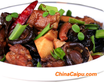 原料:三黄鸡、干香菇、冬笋、木耳