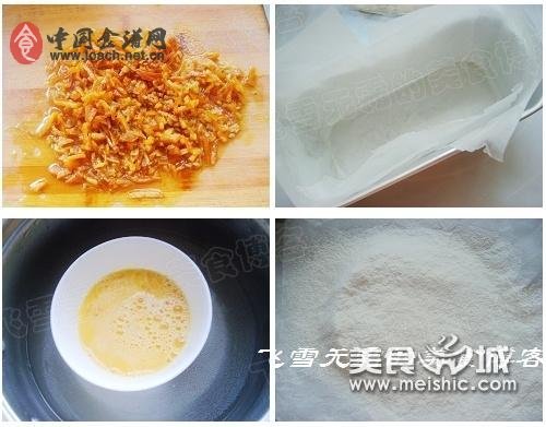 1、事先准备工作,糖渍橙皮先切成小碎粒,