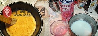 慕斯原料:奶油100ml牛奶100ml细砂糖45g鱼胶粉5g玫瑰水1大勺、红色素2滴(没有可以不放)