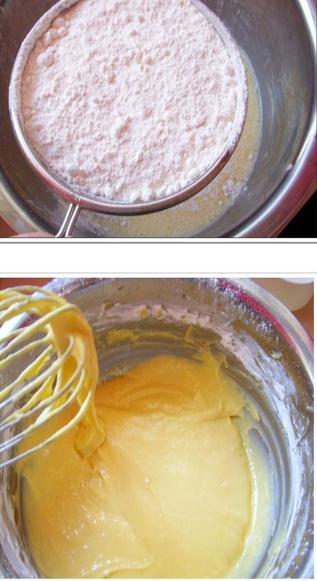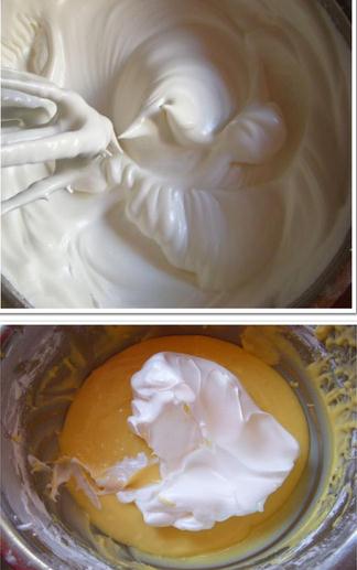 4:把打发好的蛋白放入蛋黄糊中,人上至下拌均