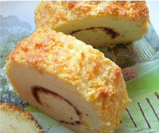7:把烤好的蛋糕取出 平铺上豆沙,用油纸卷好卷。放凉椰子馅的做法: