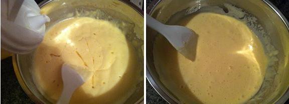 3.筛入低筋粉切拌翻拌,倒入玉米油切拌翻拌均匀;