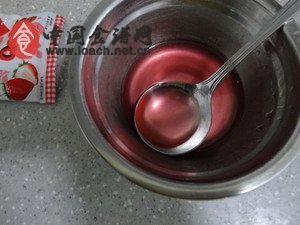 3、草莓味QQ糖加少许水,隔水融化后,在蛋糕上的水果表面刷一层,保持水果的鲜亮。一个香蕉慕斯蛋糕就完成了。